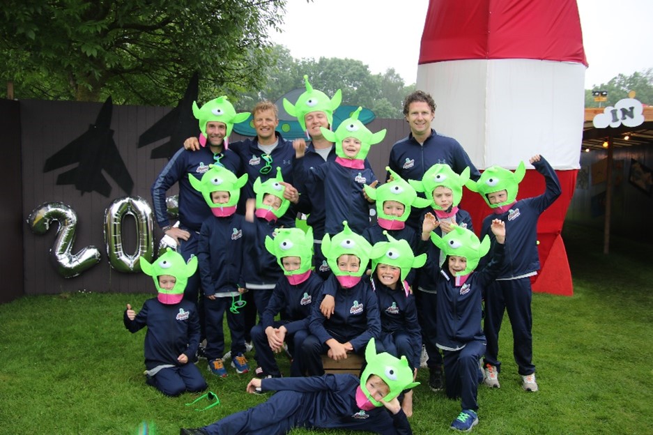 Vrijdag 17 mei was het kampterrein bij FC Aalsmeer weer omgetoverd tot een eigen dorp. Alle 283 kinderen kwamen aan op het In The Air Weekaatje, het 45e Weekaatje. Onder de hoede van ruim 60 leiders waren de kinderen verkleed als libellen, vogels, marsmannetjes, ufo’s en zelfs planeten. Iedereen ging prachtig verkleed per groep op de foto bij onze geweldige poort